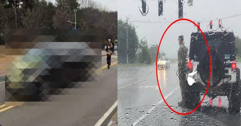 해당 남성은 제복을 입은 사람으로 도로 한복판에 차를 세우고는 홀로 비를 맞으며 경례를 하고 있었기 때문입니다.