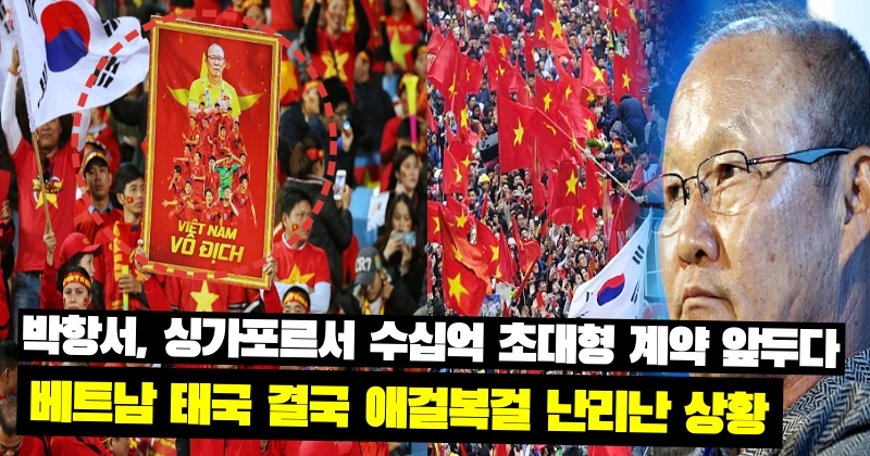 뒤늦게 베트남이 후회에 빠져 아우성을 치고 있습니다. 베트남 축구 영웅이었던 박항서 감독의 몸값이 천정부지로 치솟고 있기 때문인데요. 지난 1월 베트남 축구협회와 5년 4개월의 계약을 끝내고 국내로 귀국했던 박항서 감독이 다시 월드컵 시즌이 시작되면서 동남아 각국에서 폭발적인 러브콜을 받고 있습니다. 특히 동남아 국가대표팀마다 감독 대체 후보 이 순위로 무조건 박항서 감독의 이름이 거론될 정도로 영향력이 크다고 하는데요. 2026년 월드컵 아시아 지역 예선전이 한창인 가운데 이 연패를 기록 중인 싱가포르가 가장 먼저 박항서 감독 영입 작전을 펼치고 있다는 소식이 나왔습니다. 지난 27일 베트남 매체 더타우 이사칠은 박항서 감독이 베트남을 떠나고 나서 여러 곳에서 오퍼를 받고 있다. 특히 싱가포르 국가대표팀에서 박항서 감독을 모시기 위해 눈치 작전을 하고 있다고 보도했습니다. 박항서 감독은 2017년부터 올해 1월까지 베트남 대표팀을 이끌며 여러 업적을 만들었습니다.